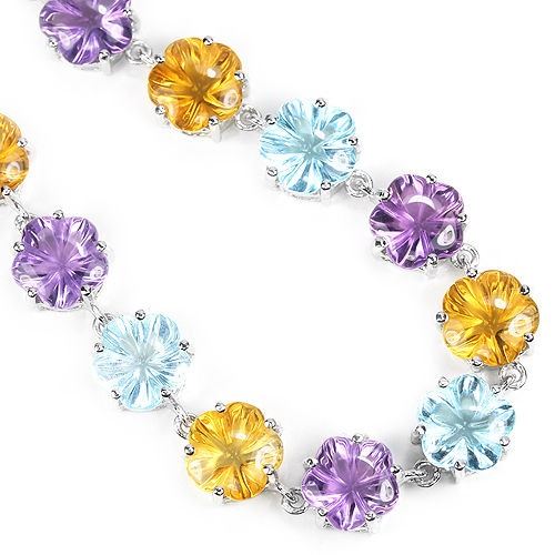 Natural MULTI COLOR AMETHYST CITRINE TOPAZ 925 SILVER BRACELET 14K WHITE GOLD COATING; LENGTH OF ITEM (Inch.)6.75 ;ITEM QUANTITY1STONE SHAPE-FLOWER CARVING;STONE DIMENSION-8 MM.;ITEM WEIGHT-75 Carats;COLOR-MULTI COLOR;TREATMENT-NATURAL UNHEATED IRRADIATIONORIGIN OF STONEBRAZIL AFRICAHARDNESS7 - 8