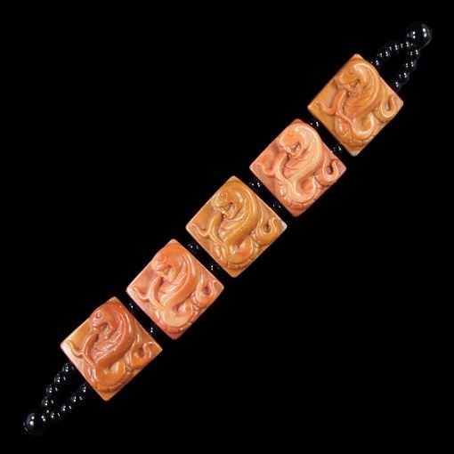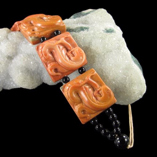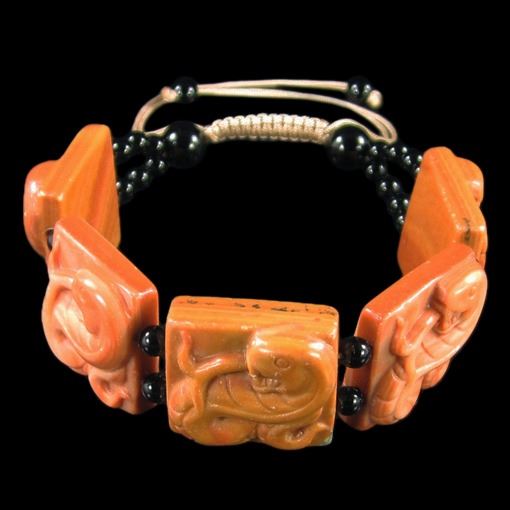 Bracelet Size 7-14"" inch *Stone Name Red Malachite Snake *Stone Overall Dimension for each bead 23x23x10 mm (0.906x0.906x0.394 inch ) *Weight 260 ct/ 52 g/ 1.834248 oz*Handcrafted knot chain.....Other Stones used in this Bracelet Red Malachite;*Center Stone Properties *Locality unknown *Appearance opaque *Color red & off-white band *Mohs Hardness 4.5 *Source Natural *Treatments None *Drilled YES diameter 2.5/36-3/36 inch *Other Names banded jasper~~~~~~~~~(+) Each step of our Lapidary work is under tight quality control . With the best pattern-color combination possible in mind the initial cut was done by experienced lapidary ... The last-step diamond polishing makes the surface of each bead/cab mirror-like glossy that meet the highest standard possible. Finally only those met all quality requirements are selected.