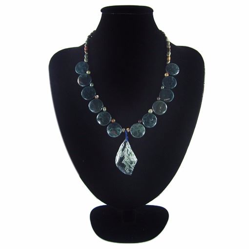 Necklace Size Ajutable 19-28 inch (if range given) *Stone Name Moss Agate *Stone Overall Dimension for each bead 48x29x6 mm (1.890x1.142x0.236 inch ) *Weight 370 ct/ 74 g/ 2.610276 ozOther Stones used in this Necklace Fancy Agate*Center Stone Properties *Locality India *Appearance transparent to semi-transparent *Color Red Green Yellow and others Green *Mohs Hardness 7 *Source Natural *Treatments None *Drilled YES diameter 2.5/36-3/36 inch *Other Names~~~~~~~~~(+) Each step of our Lapidary work is under tight quality control . With the best pattern-color combination possible in mind the initial cut was done by experienced lapidary ... The last-step diamond polishing makes the surface of each bead/cab mirror-like glossy that meet the highest standard possible. Finally only those met all quality requirements are selected.