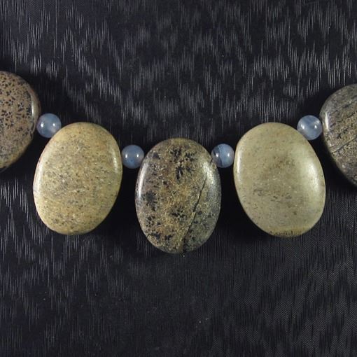 Stone Name Brush Painting *Stone Overall Dimension for each bead 41x28x7 mm (1.614x1.102x0.276 inch ) *Weight 425 ct/ 85 g/ 2.99829 ozOther Stones used in this Necklace Chinese Painting Jasper*Center Stone Properties *Locality China *Appearance opaque *Color white and black *Mohs Hardness 6.5 *Source Natural *Treatments None *Drilled YES diameter 2.5/36-3/36 inch *Other Names~~~~~~~~~(+) Each step of our Lapidary work is under tight quality control . With the best pattern-color combination possible in mind the initial cut was done by experienced lapidary ... The last-step diamond polishing makes the surface of each bead/cab mirror-like glossy that meet the highest standard possible. Finally only those met all quality requirements are selected.