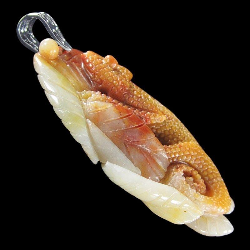 This is hand carved Chameleon Pendant *Stone Properties *Stone Name Multi-Color Amazonite *Overall Dimension 69x35x11 mm (2.717x1.378x0.433 inch )mm *Weight 150 ct/ 30 g/ 1.05822 oz *Mohs Hardness 7 *Source Natural *Treatments None *Drilled YES diameter 2.5/36-3/36 inch *Other Names*This Chameleon bead is handcarved out of one piece of gemstone Multi-Color Amazonite .The creative design of each item is based on the stone's natural color and pattern and it demands great craftmenship and patience to complete . This beauty is absolutely a unique center piece for your jewelry design. .