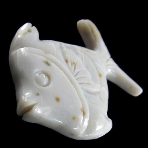 *Stone Name Ocean Jasper *Overall Dimension 50x40x7 mm (1.969x1.575x0.276 inch )mm *Weight 75 ct/ 15 g/ 0.52911 oz*Locality Madagascar *Appearance semi-transparent to opaque *Color Wide variety of swirling colors yellowish red orange green blue or pinkish burgundy etc. *Mohs Hardness 7 *Source Natural *Treatments None *Drilled YES diameter 2.5/36-3/36 inch **This Fish bead is handcrafted out of one piece of gemstone Ocean Jasper .The creative design of each item is based on the stone's natural color and pattern and it demands great craftmenship and patience to complete . This beauty is absolutely a unique center piece for your jewelry design. .