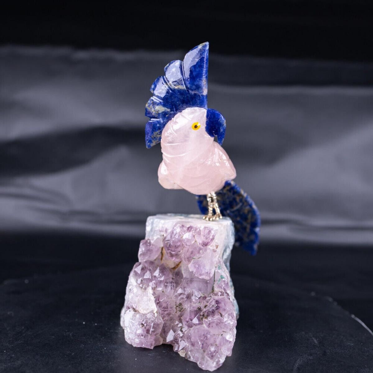 Natural Stone Handcarved Quartz Bird;Lenght: 148 mm;Bird with base Weight: 368 g