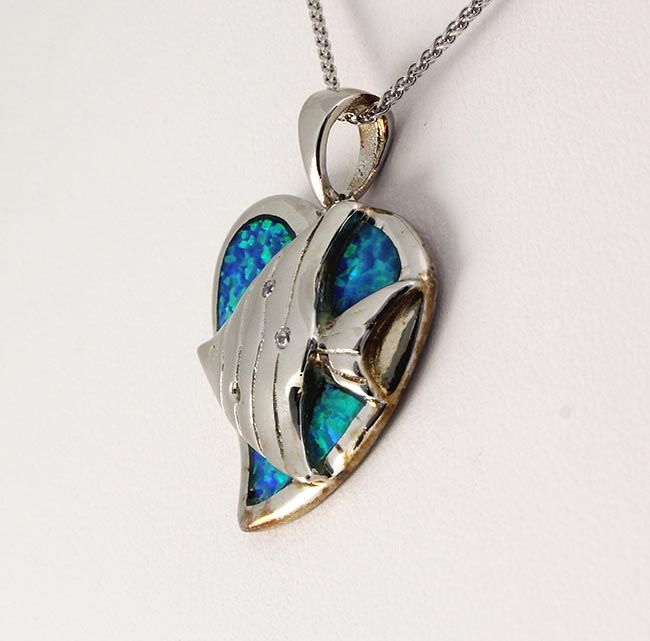 Natural Stone Opal Heart Design Pendant **|**|** 4.10g Natural Stone Blue and Green Flashes Opal Fish Heart Design Pendant; stamp 925 ; MSRP: $100