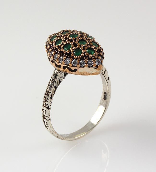 Natural Stone Statement Victorian Design Ring **|**|** 5.99g Natural Stone Emerald Beryl Victorian Design Ring w/ cz diamonds; stamp 925 ; MSRP: $0