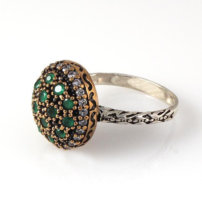 Natural Stone Statement Victorian Design Ring **|**|** 5.93g Natural Stone Emerald Beryl Victorian Design Ring w/ cz diamonds; stamp 925 ; MSRP: $0