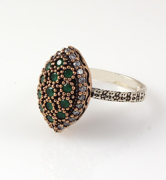 Natural Stone Statement Victorian Design Ring **|**|** 5.99g Natural Stone Emerald Beryl Victorian Design Ring w/ cz diamonds; stamp 925 ; MSRP: $0