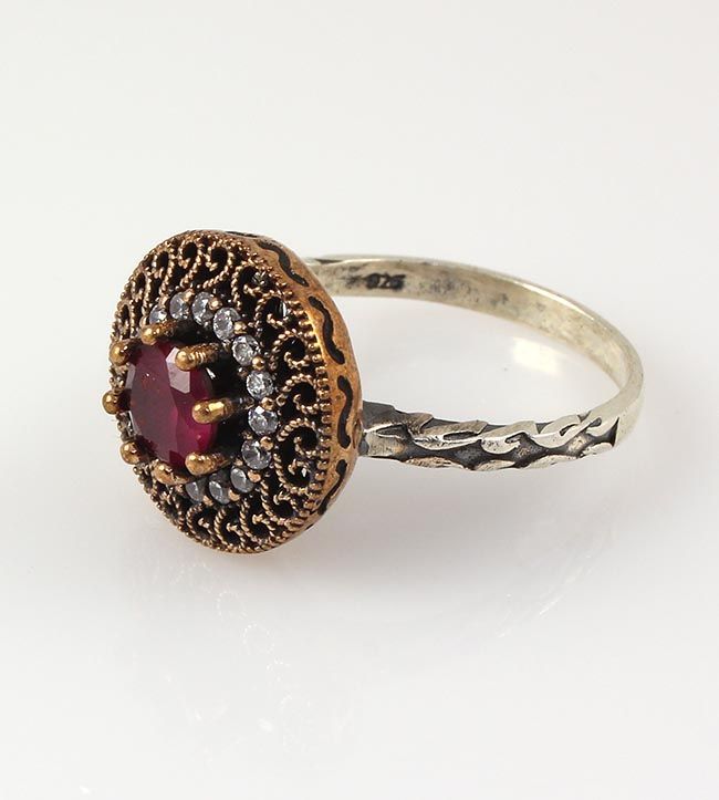Natural Stone Statement Victorian Design Ring **|**|** 4.95g Natural Stone 6MM Ruby Round Victorian Design Ring w/ cz dia; stamp 925 ; MSRP: $0