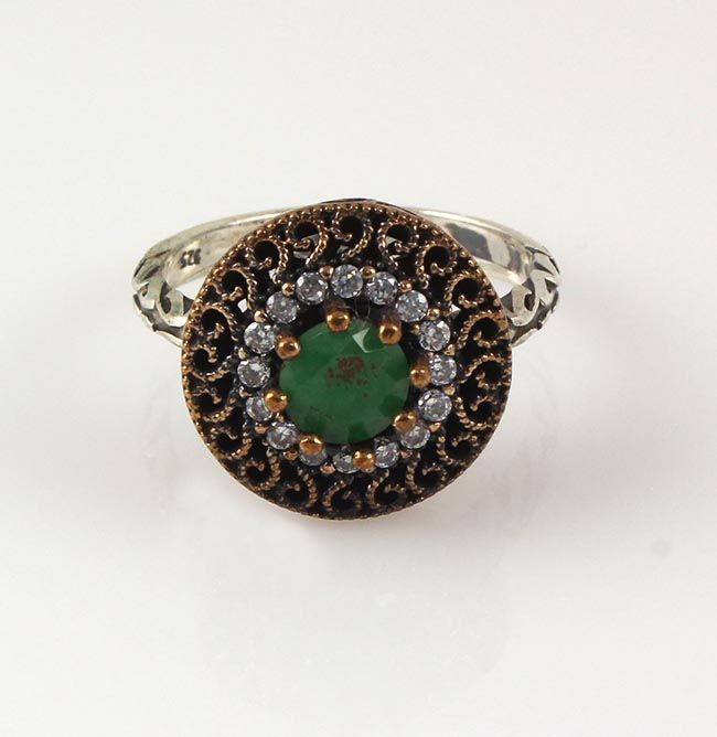 Natural Stone Statement Victorian Design Ring **|**|** 5.04g Natural Stone 6MM Emerald Beryl Victorian Design Ring w/ cz diamonds; stamp 925 ; MSRP: $0