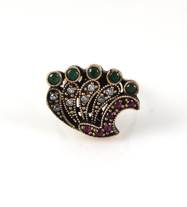 Natural Stone Statement Victorian Design Ring **|**|** 5.40g Natural Stone Ruby and Emerald Beryl Victorian Design Ring w/ cz dia; stamp 925 ; MSRP: $0