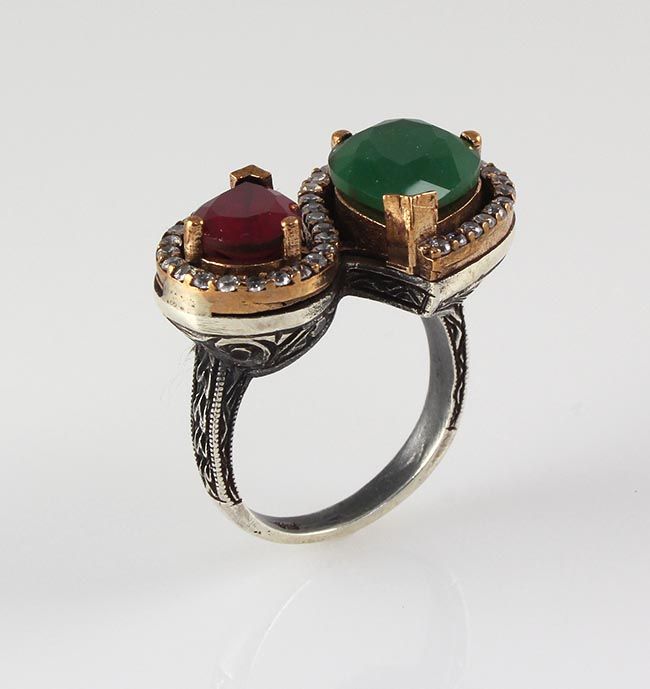 Natural Stone Statement Victorian Design Ring **|**|** 9.95g Natural Stone 9x7MM Ruby & 12x10MM Emerald Beryl Victorian S Design Ring; stamp 925 ; MSRP: $100