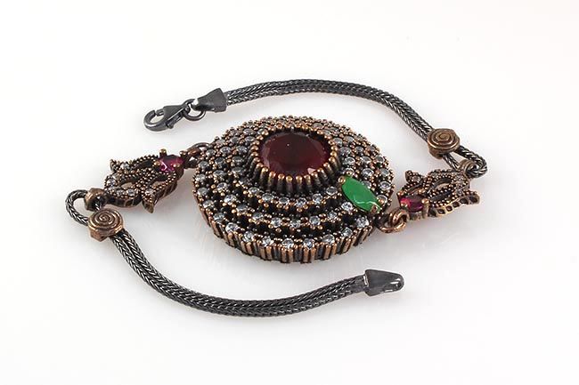 Natural Stone Unrivaled Victorian Design Bracelet **|**|** 28.85g Natural Stone 13MM Ruby Center w/ cz diamonds around in Victorian Design Braclet; stamp 925 ; MSRP: $200