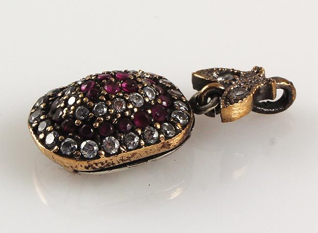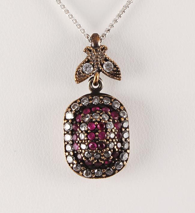 Natural Stone Vintage Victorian Design Pendant **|**|** 4.27g Natural Stone Ruby Victorian Design Pendant w/ cz dia around; stamp 925 ; MSRP: $0