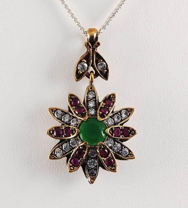Natural Stone Vintage Victorian Design Pendant **|**|** 5.70g Natural Stone Emerald Beryl (6MM) & Ruby Victorian Design Pendant; stamp 925 ; MSRP: $0