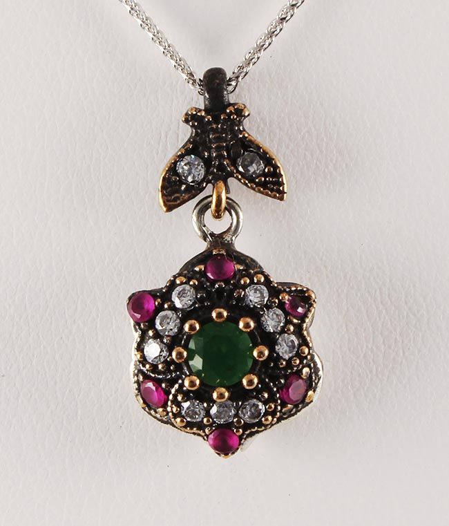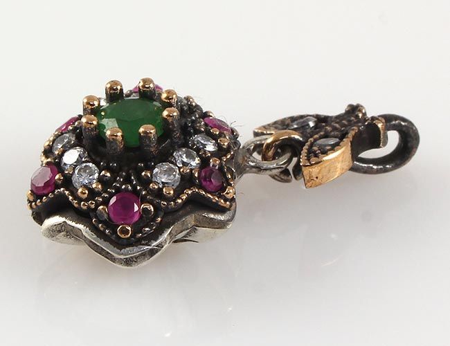 Natural Stone Vintage Victorian Design Pendant **|**|** 3.83g Natural Stone 4MM Emerald Beryl& Ruby Victorian Design Pendant; stamp 925 ; MSRP: $0