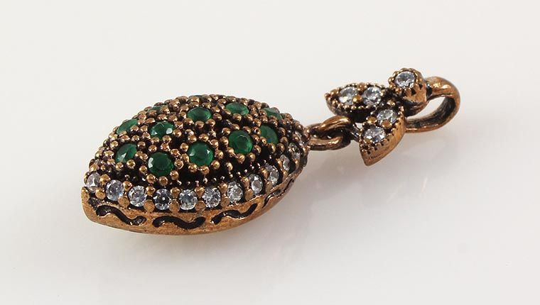 Natural Stone Vintage Victorian Design Pendant **|**|** 4.80g Natural Stone Emerald Beryl Victorian Design Pendant w/ cz dia around; stamp 925 ; MSRP: $0