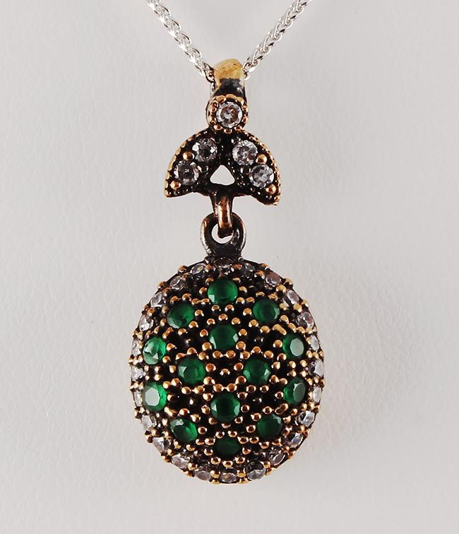 Natural Stone Vintage Victorian Design Pendant **|**|** 4.85g Natural Stone Emerald Beryl Victorian Design Pendant w/ cz dia; stamp 925 ; MSRP: $0