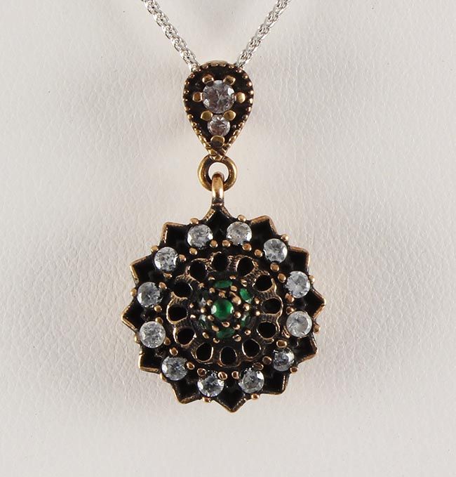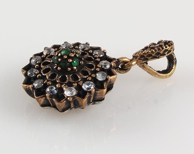 Natural Stone Vintage Victorian Design Pendant **|**|** 5.85g Natural Stone Emearald Beryl Victorian Design Pendant w/ cz dia around; stamp 925 ; MSRP: $0