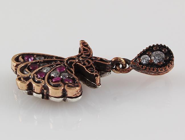 Natural Stone Vintage Victorian Design Pendant **|**|** 3.75g Natural Stone Ruby Victorian Design Pendant w/ cz diamonds; stamp 925 ; MSRP: $0