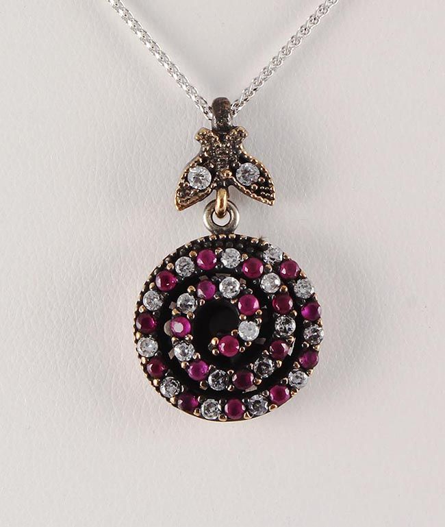 Natural Stone Vintage Victorian Design Pendant **|**|** 4.10g Natural Stone Ruby Spiral Victorian Design Pendant w/ cz diamonds; stamp 925 ; MSRP: $0