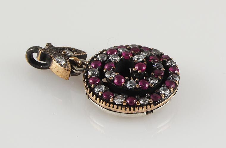 Natural Stone Vintage Victorian Design Pendant **|**|** 4.10g Natural Stone Ruby Spiral Victorian Design Pendant w/ cz diamonds; stamp 925 ; MSRP: $0