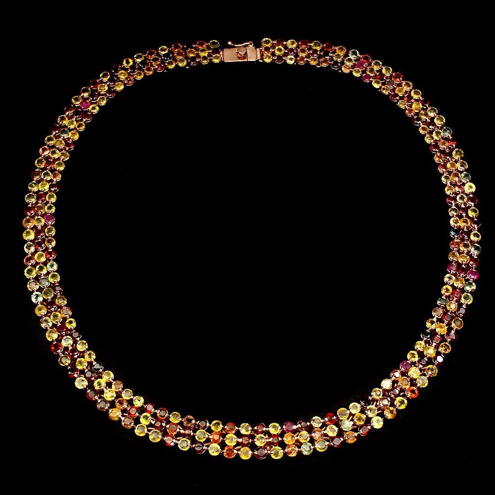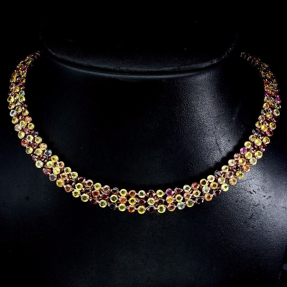 NECKLACE........ TYPE OF METAL -925 STERLING SILVER. PLATE -14K WHITE GOLD..; LENGTH (INCHES) 16.5; MAIN STONE -SAPPHIRE; OTHER GEMS TOTAL WEIGHT -351.54 CT (TOTAL WEIGHT OF SILVER + STONE) DIMENSION * STONE 3.0 MM. * STONES PART LENGTH 410.0 X 11.0 MM.; MAIN STONE SHAPE -ROUND CUT; MAIN STONE COLOR -MULTI-COLOR; CLARITY/GRADE -IF TO VVS; LUSTER -RAVISHING; ORIGIN - AFRICA; HARDNESS -9;