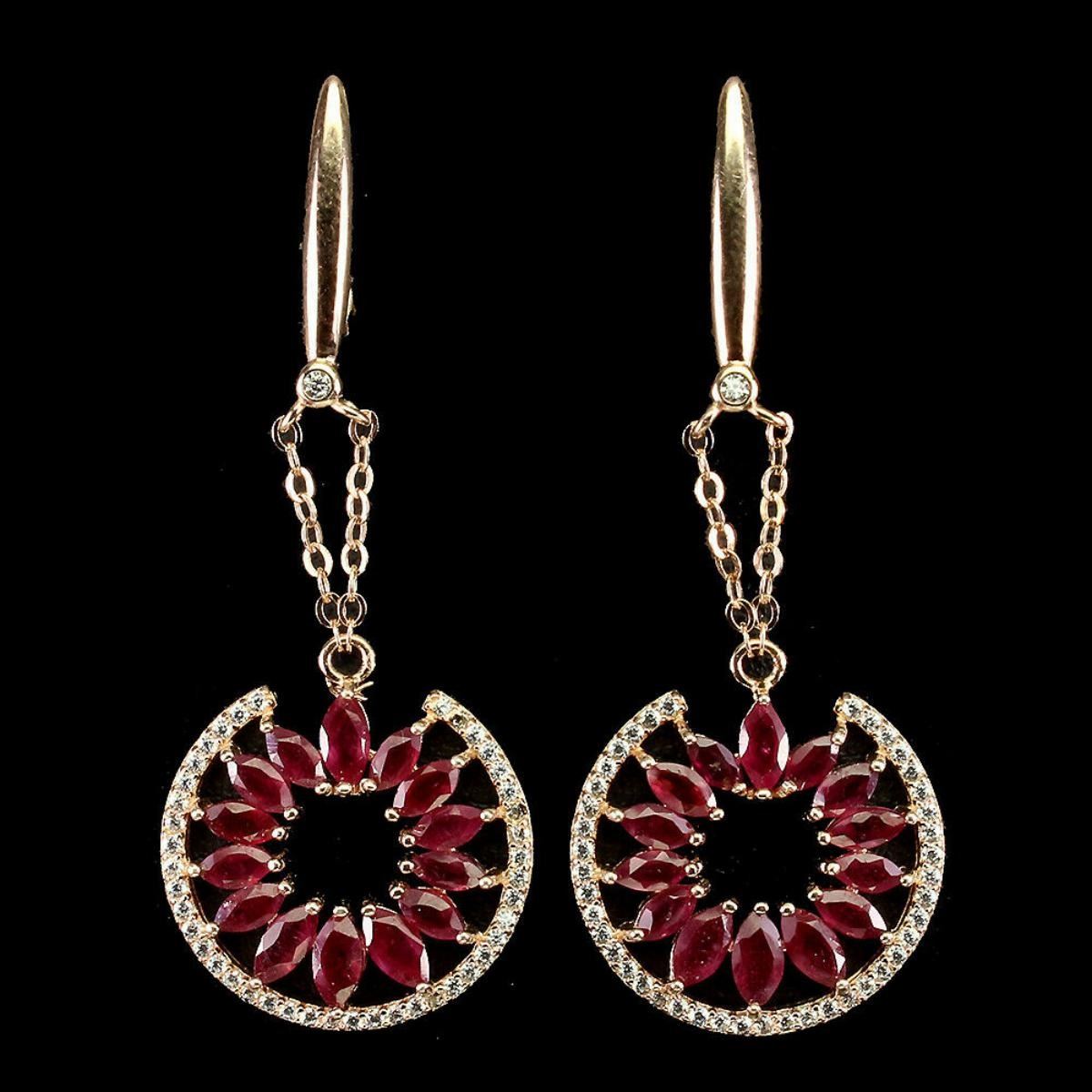 925 STERLING SILVER;PLATE-14K ROSE GOLD;MAIN STONE-RUBY;TOTAL WEIGHT-6.05 GRAM (TOTAL WEIGHT OF SILVER + STONE)DIMENSION-* STONE 4.0 X 2.0 TO 5.0 X 2.5 MM. * CZ 1.0 MM. * FACE EARRINGS- 48.0 X 19.0 MM.;MAIN STONE SHAPE-MARQUISE CUT;MAIN STONE COLOR-TOP BLOOD RED;TREATMENT-- Yes;ORIGIN-MADAGASCAR;HARDNESS-9;