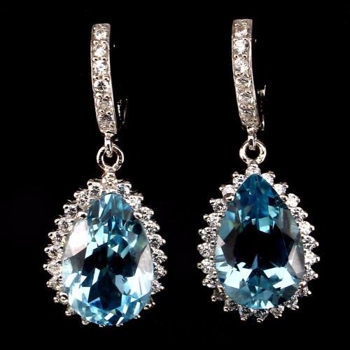 925 STERLING SILVER............PLATE-14K WHITE GOLD;MAIN STONE-SWISS BLUE TOPAZ;TOTAL WEIGHT-43.34 CT (TOTAL WEIGHT OF SILVER + STONE)DIMENSION* STONE 15.0 X 10.0 MM. * CZ 1.0 TO 2.0 MM. * FACE EARRINGS 34.0 X 14.0 MM.;MAIN STONE SHAPE-PEAR CUT;MAIN STONE COLOR-TOP SWISS BLUE;CLARITY/GRADE- VVS;TREATMENT-Irradiation;ORIGIN- Brazil;HARDNESS8.0