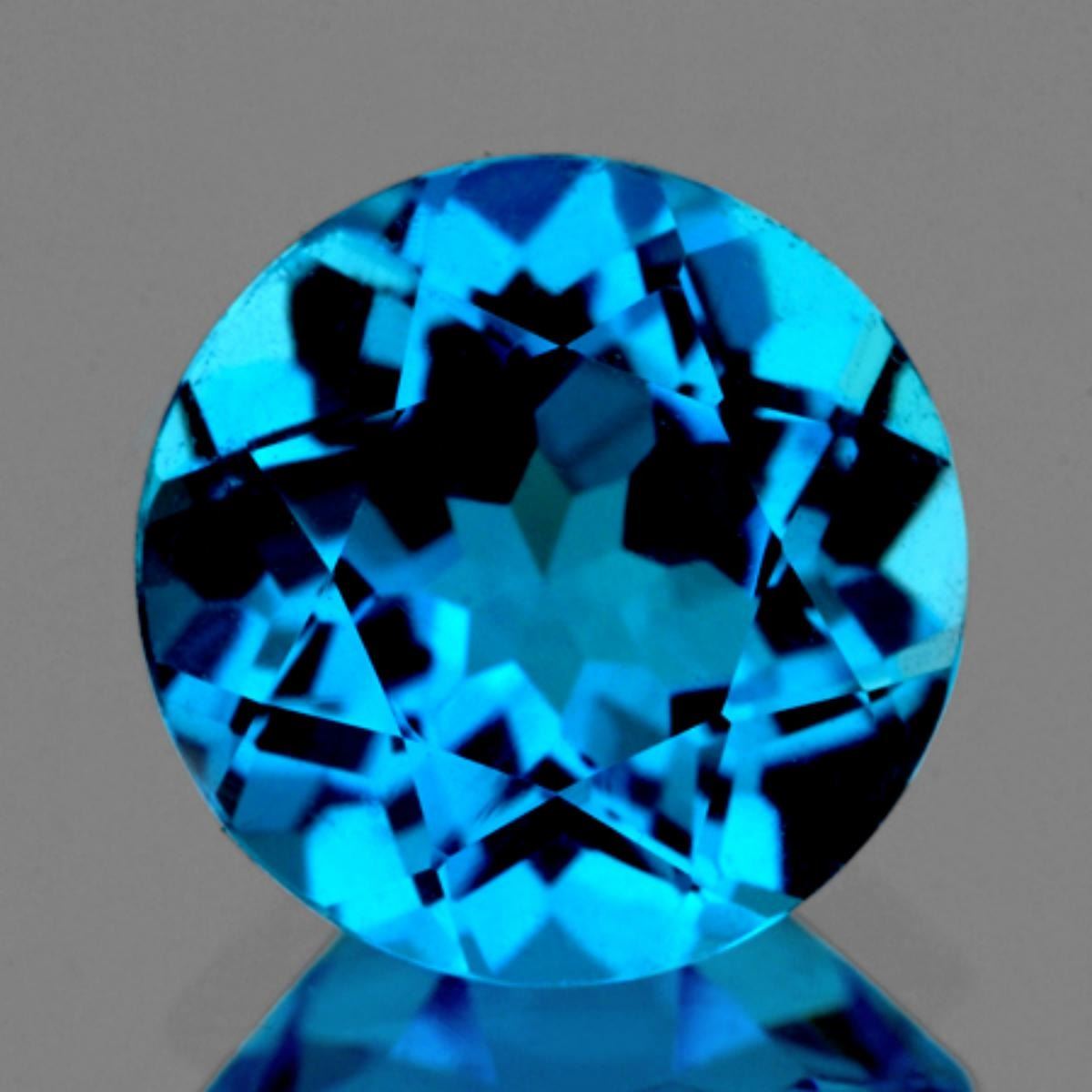 Natural Swiss Blue Topaz WEIGHT : 3.00 cts; SHAPE : Round; SIZE ( L x W x D ) : 9.00 mm; QUANTITY : 1 piece; COLOR : Intense Swiss Blue ; AAA Color; CLARITY : Flawless-VVS ; ORIGIN : Brazil; HARDNESS : 8; LUSTER : Best Sparkling!!! TREATMENT : Heated;
