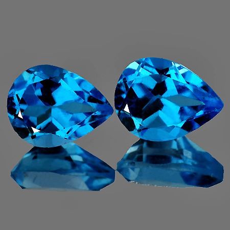 Natural Topaz WEIGHT : 3.23 Cts SHAPE : Pear SIZE ( L x W x D ) : 9.00 x 7.00 mm QUANTITY : 2 pieces ( Perfectly Matched Pair ) COLOR : Swiss Blue AAA COLOR CLARITY : IF-VVS1 ORIGIN : Brazil HARDNESS : 8 LUSTER : Excellent!!! TREATMENT : Heated