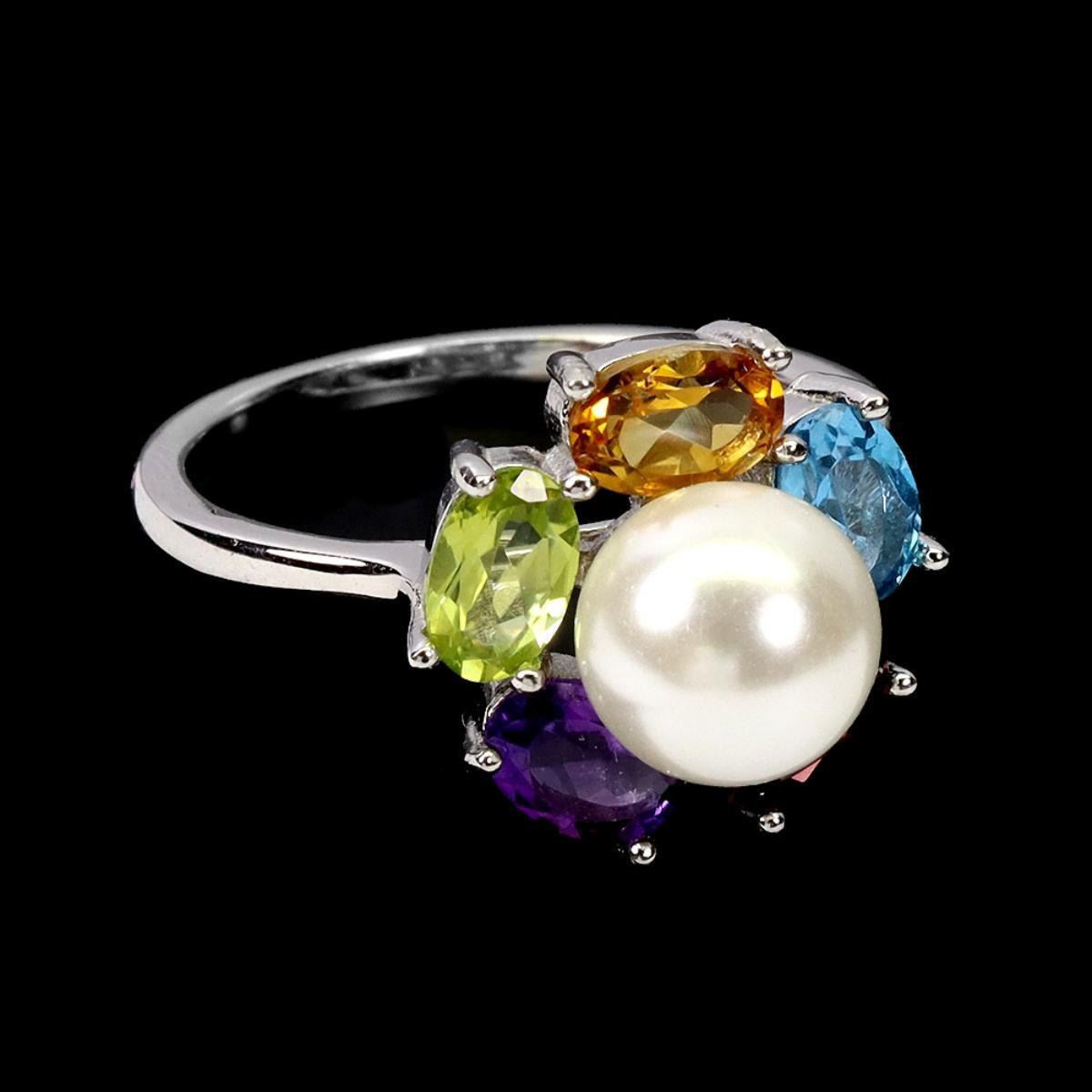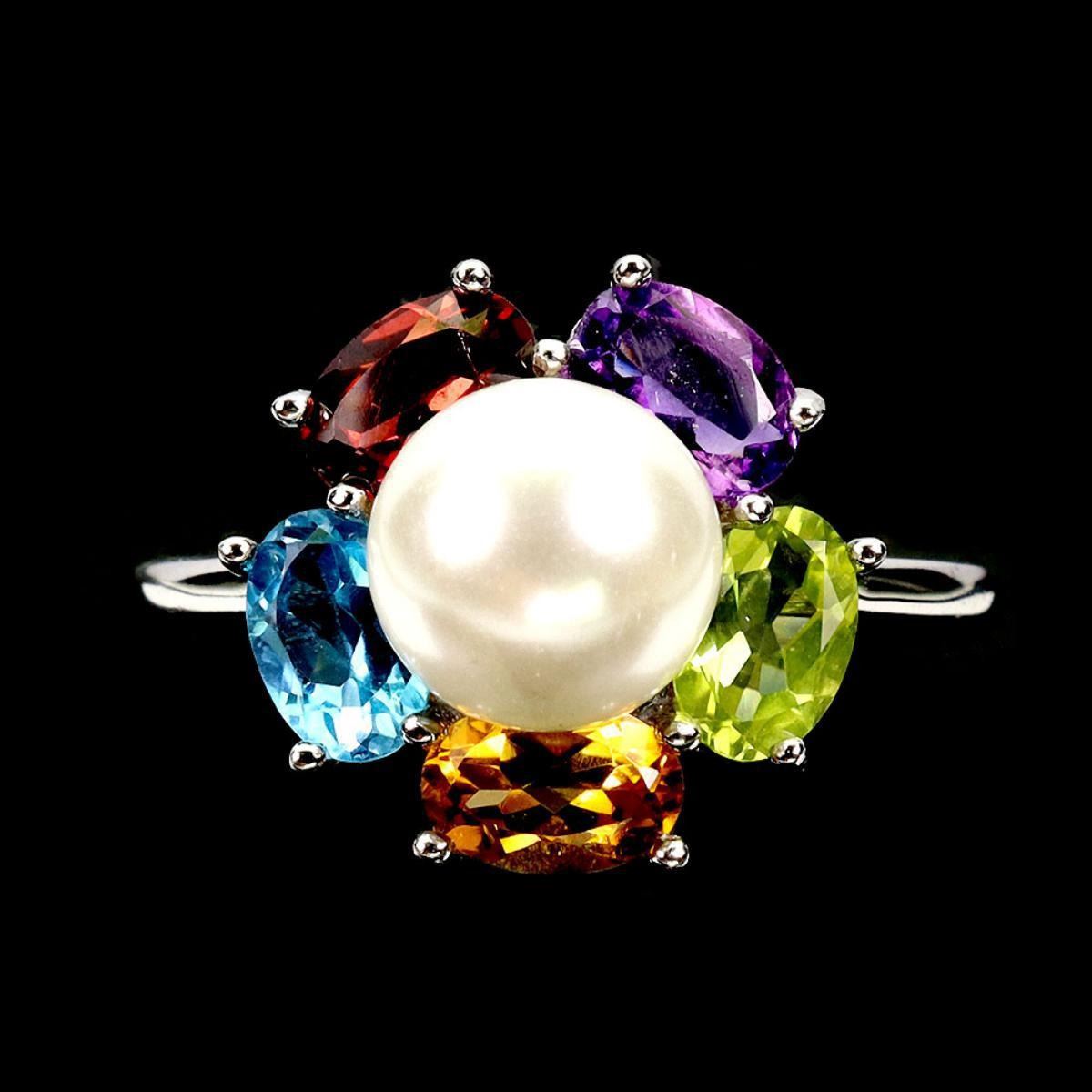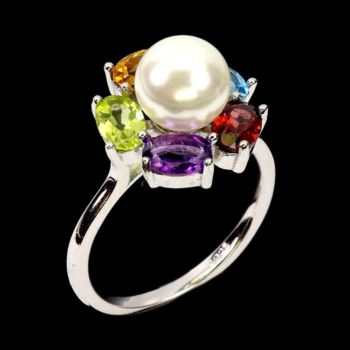DIMENSION- * STONE 6.0 X 4.0 MM. * PEARL 8.0 MM. * RING SIZE 7.0 * FACE RING 15.0 X 15.0 MM.;