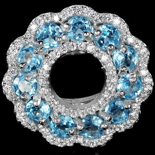 GENUINE AAA SWISS BLUE TOPAZ & WHITE CZ 925 SILVER RING 14K WHITE GOLD COATING....Resizeable....STONE SHAPE -ROUND PORTUGESE CUT;STONE DIMENSION3.5 MM.MAIN STONE WEIGHT1.38 CARAT;COLORAAA SWISS BLUE;CLARITYIF - VVS;LUSTERDAZZLING;TREATMENT -IRRADIATION;ORIGIN OF STONE- AFRICA;HARDNESS- 8.0 ;OTHERFACE OF RING 21 X 21 MM. WHITE CUBIC ZIRCONIA 1 MM. TOTAL 5.75 G.