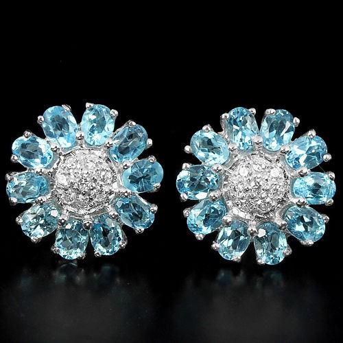 GENUINE SWISS BLUE TOPAZ WHITE CZ 925 SILVER EARRING 14K WHITE GOLD COATING; STONE SHAPEOVAL PORTUGUESE CUTSTONE DIMENSION4 X 3 MM.ITEM WEIGHT5.1 GRAMCOLORSWISS BLUECLARITYIF TO VVSLUSTERDAZZLINGTREATMENTIRRADIATIONORIGIN OF STONEAFRICAHARDNESS8OTHERFACE IF EARRING 15 X 15 MM. WHITE CUBIC ZIRCONIA 1.5 MM.