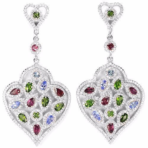 REAL TANZANITE RHODOLITE GARNET Chrome Diopside CZ 925 SILVER EARRING 14K WHITE GOLD COATING; STONE SHAPE -PEAR ROUND PORTUGUESE CUT; STONE DIMENSION -5 X 3 MM. 3 MM.; ITEM WEIGHT -19.8 GRAM; COLOR -MULTI COLOR; CLARITY IF - VVS; TREATMENT -UNHEATED; ORIGIN OF STONE -TANZANIA, AFRICA RUSSIA; HARDNESS 5.0 - 7.5; FACE OF EARRING -65 X 31 MM. ; WHITE CUBIC ZIRCONIA 1 MM.