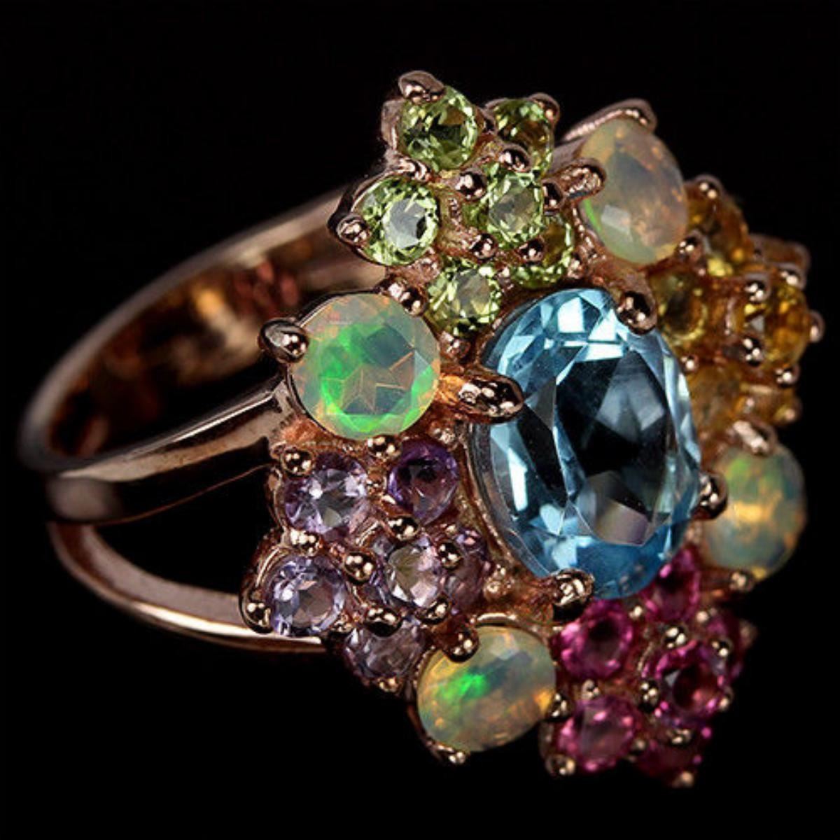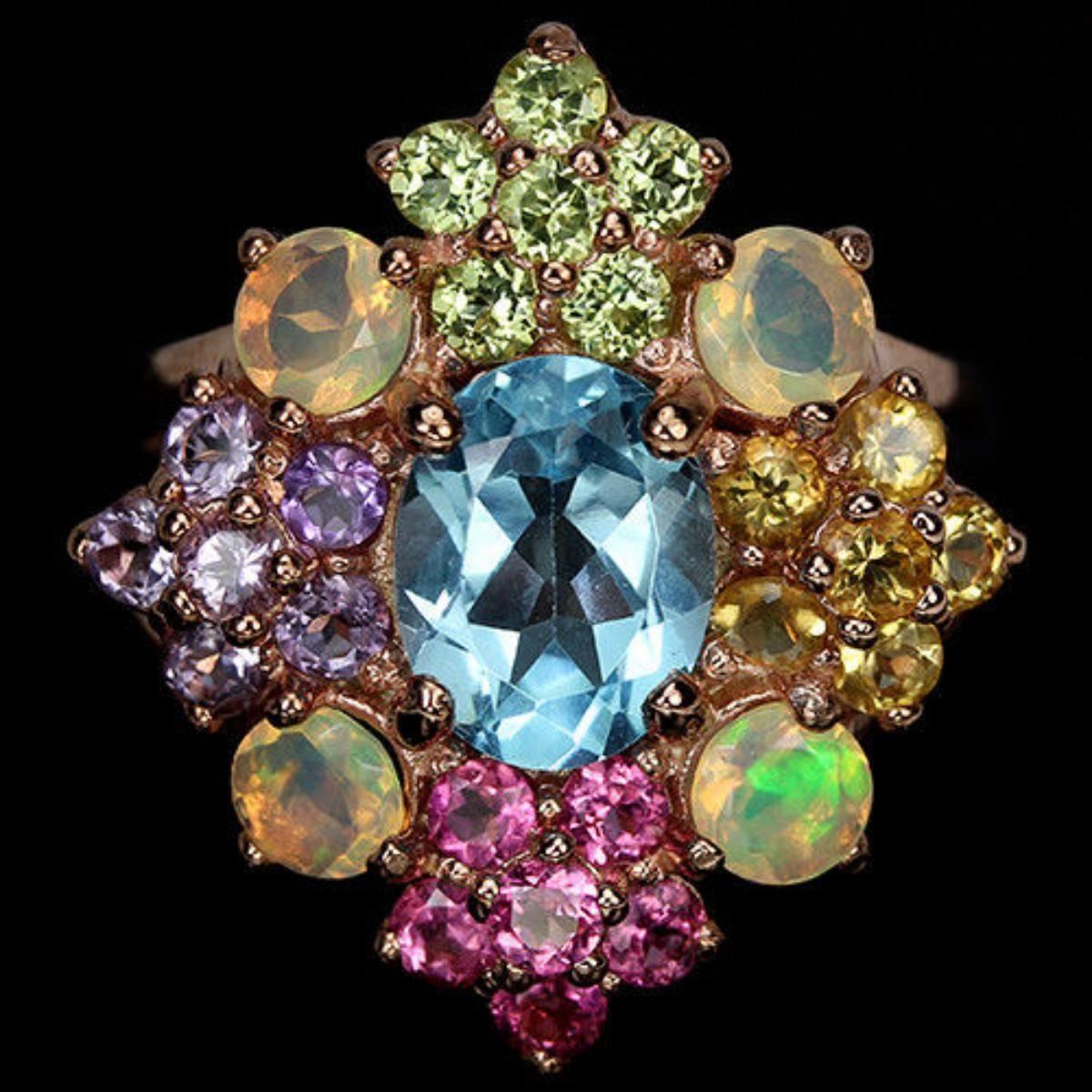 REAL TOPAZ OPAL TOURMALINE CITRINE PERIDOT 925 SILVER RING 14K PINK GOLD COATING; RING SIZE-6.75 ( resizeable )ITEM QUANTITY1STONE SHAPEOVAL & ROUNDSTONE DIMENSION9 X 7 MM. , 4 M. & 2.5 MM.ITEM WEIGHT6.5 GRAMCOLORMULTI COLORCLARITYTRANSLUCENT & IF-VVSLUSTERADORABLETREATMENTNATURAL UNHEATED & IRRADIATIONORIGIN OF STONEAFRICA, ASIA & BRAZILHARDNESS5.5 - 8.0;FACE OF RING 23 X 21 MM.