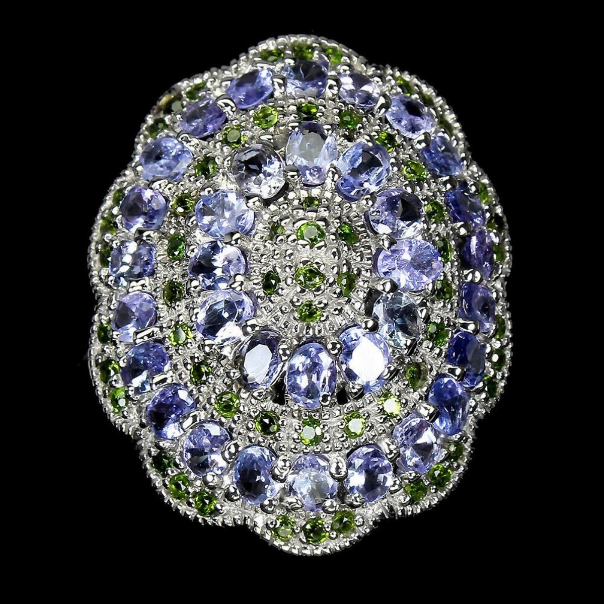 925 STERLING SILVER;PLATE-14K WHITE GOLD;RING SIZE/---(resizeable)9.5MAIN STONE-TANZANITE;OTHER GEMS-CHROME DIOPSIDE;TOTAL WEIGHT-12.21 GRAM (TOTAL WEIGHT OF SILVER + STONE)DIMENSION-* STONE 1.5 TO 4.0 X 3.0 MM. * RING SIZE 9.5 * FACE RING 33.0 X 26.0 MM.;MAIN STONE SHAPE-OVAL CUT;MAIN STONE COLOR-TOP RICH BLUE VIOLET;CLARITY/GRADE-IF TO VVS;LUSTER-GORGEOUS;TREATME-NT-UNHEATED;ORIGINTANZANIA - AFRICA;HARDNESS-7;
