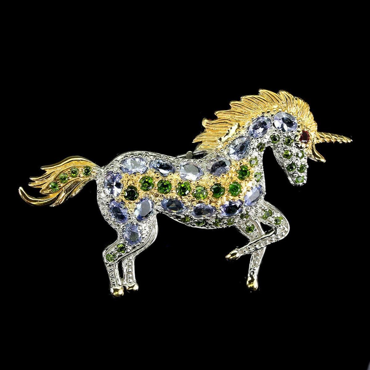Natural Tanzanite Chrome Diopside Unicorn Brooch