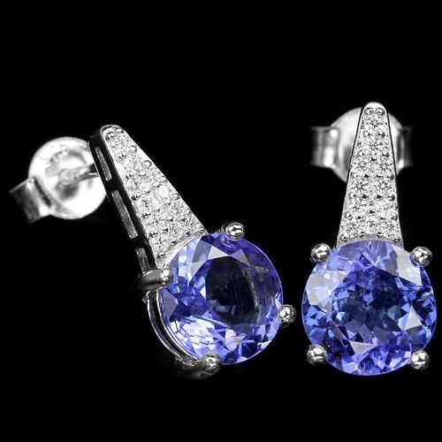 NATURAL TOP BLUE TANZANITE WHITE CZ 925 SILVER EARRING 14K WHITE GOLD COATING; TONE SHAPEROUND PORTUGESE CUTSTONE DIMENSION7 MM.MAIN STONE WEIGHT2.41 CARATCOLORTOP BLUECLARITYIF - VVSLUSTERGLORIOUSTREATMENTUNHEATEDORIGIN OF STONETANZANIAHARDNESS7.5OTHERFACE OF EARRING 14 X 7 MM. WHITE CUBIC ZIRCONIA 1 MM. TOTAL 2.35 G.