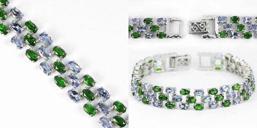 REAL BLUE TANZANITE CHROME DIOPSIDE 925 SILVER BRACELET 14K WHITE GOLD COATING; LENGTH OF ITEM (Inch.)7.00 ( RESIZE : NO )ITEM QUANTITY1STONE SHAPEOVAL PORTUGUESE CUTSTONE DIMENSION5 X 3 MM.MAIN STONE WEIGHT17.45 CARATCOLORGREEN BLUECLARITYIF - VVSLUSTERDAZZLINGTREATMENTUNHEATEDORIGIN OF STONETANZANIA RUSSIAHARDNESS5.0 - 7.5OTHERTOTAL 22.08 G.