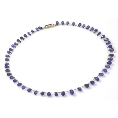 Natural Tanzanite Teardrop Beads Necklace 66.70 ctw **|**|** Total CTW: 66.7; Dia/Gem Count: Periwinkle Hue Blue. Semi-Opaque ; Dia / Gem Shape :Smooth teardrop briolettes ; Cut / Color: Excellent smooth, polished cut. Fantastic Natural colour. ; MSRP: $475