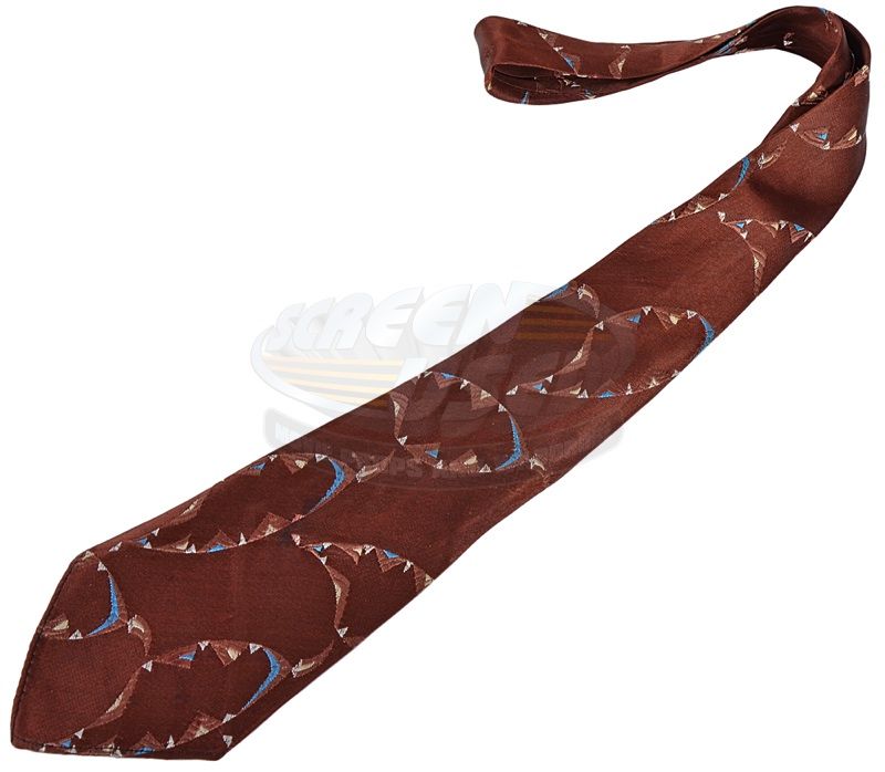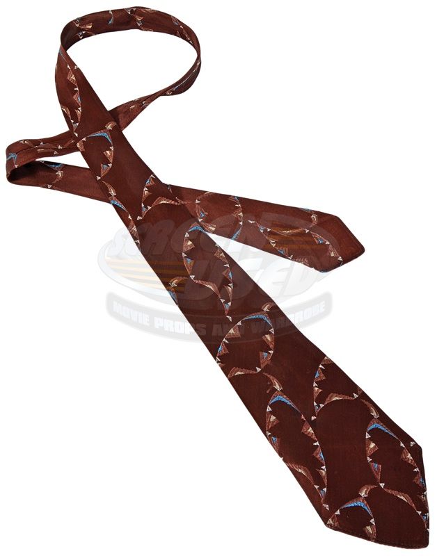 (TriStar Pictures, 1984) This tie was custom made by the production for use by Robert Redford as "Roy Hobbs". The tie features a distinctive brown, cream and light blue geometric pattern and remains in very good condition. The tie comes with a COA signed by the film's costume supervisor, confirming the tie's use during filming.