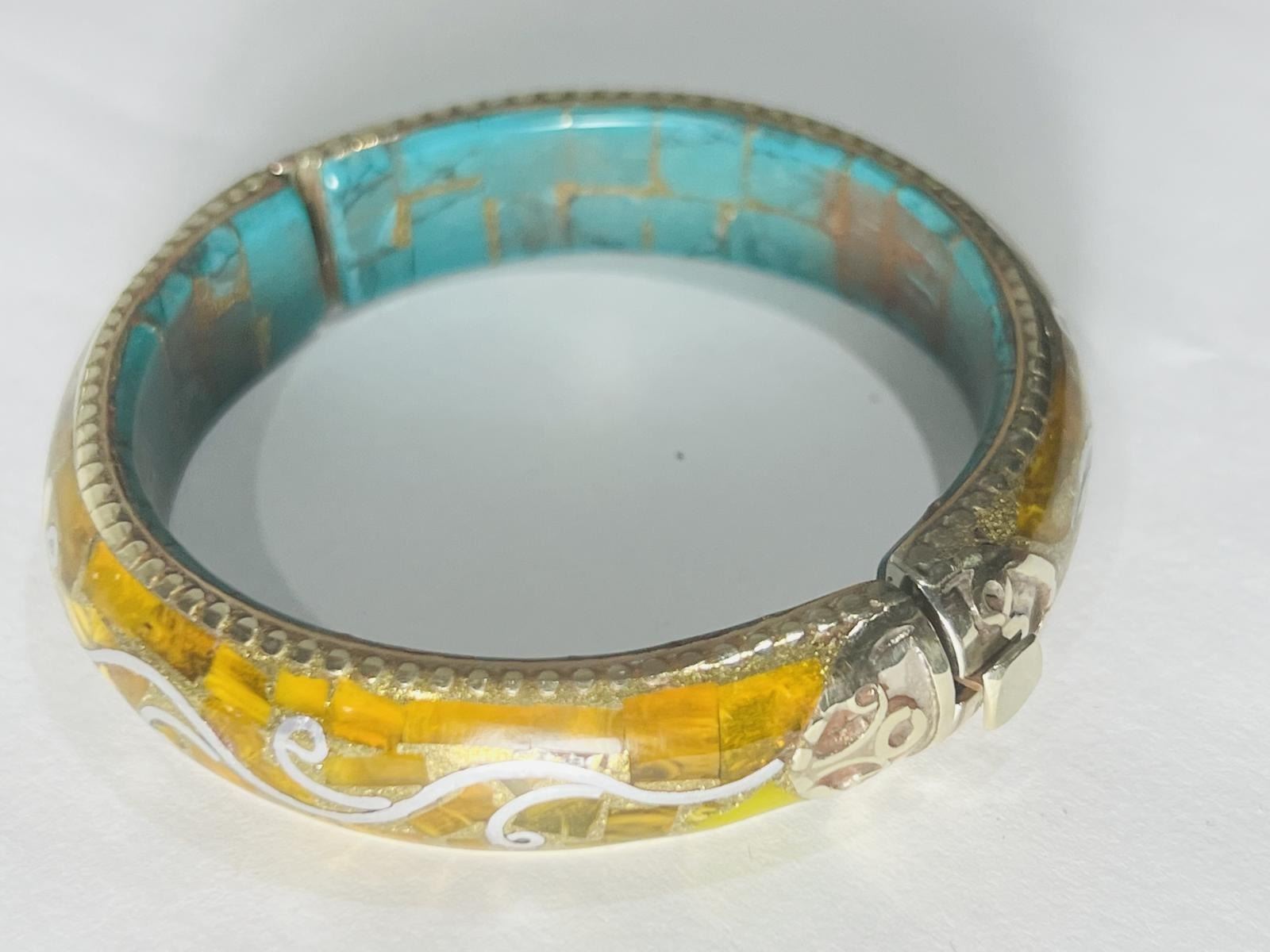 Natural Tibet Hand Made Tibet Amber & Turquoise... free size Bangle.......This Bangle is made by Tibet Tribal ladies...completely natural stones....its free size as there is lock to open the bangle and fits all sizes.