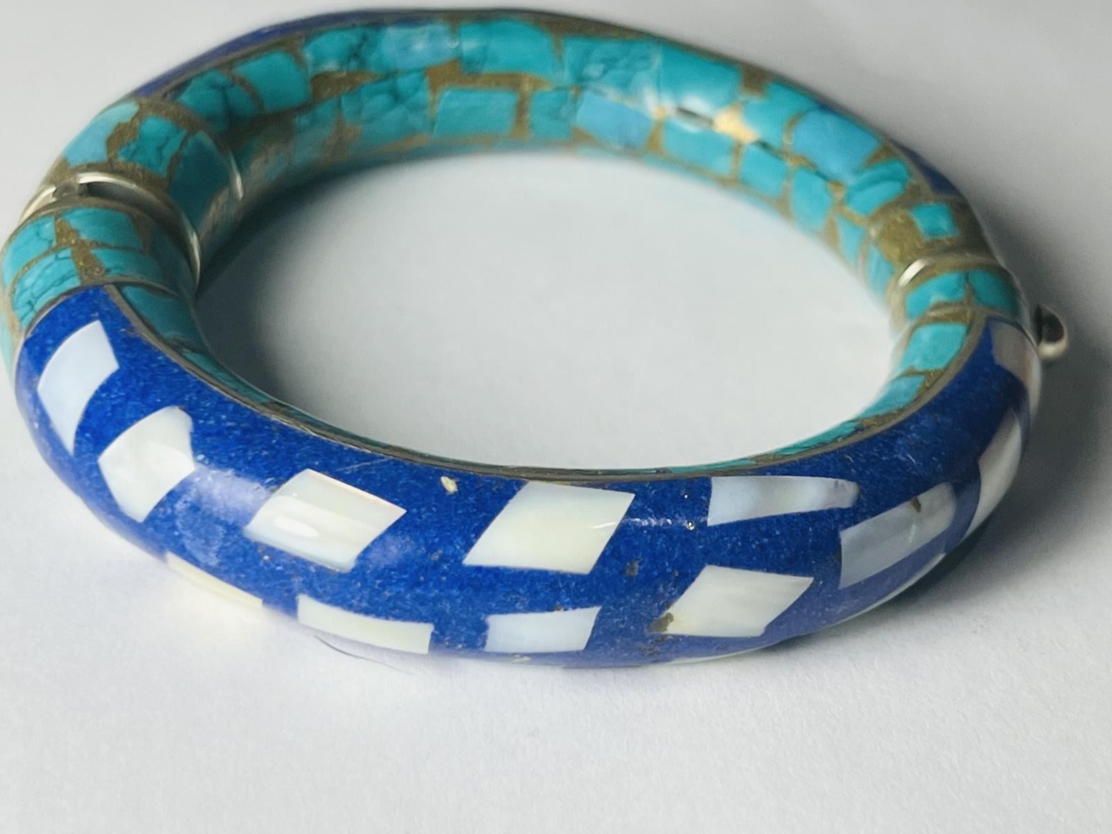 Natural Tibet Hand Made Tibet Lapis Lazuli & Turquoise free size Bangle.......This Bangle is made by Tibet Tribal ladies...completely natural stones....its free size as there is lock to open the bangle and fits all.