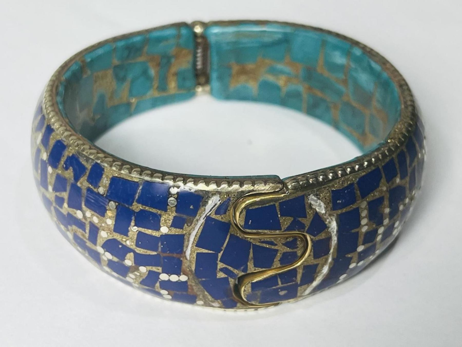 Natural Tibet Hand Made Tibet Lapis Lazuli & Turquoise free size Bangle.......This Bangle is made by Tibet Tribal ladies...completely natural stones....its free size as there is lock to open the bangle and fits all sizes