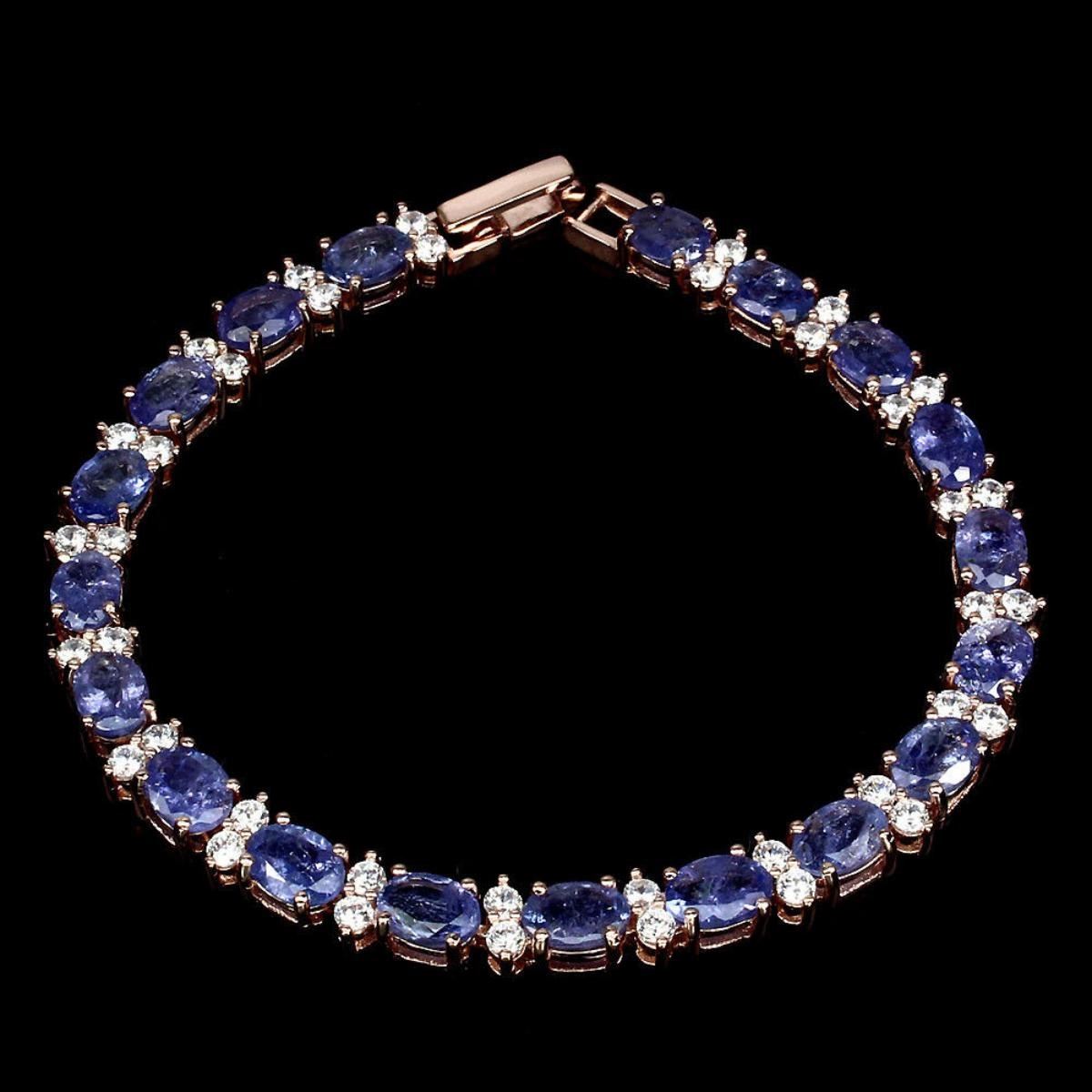 925 STERLING SILVER;PLATE...14K ROSE GOLD;LENGTH (INCHES)8;MAIN STONE...TANZANITE;OTHER GEMS...CUBIC ZIRCONIA;TOTAL WEIGHT...74.75 CT (TOTAL WEIGHT OF SILVER + STONE)DIMENSION* STONE 7.0 X 5.0 MM. * CZ 2.5 MM. * FACE BRACELET 180.0 X 7.0 MM.;;MAIN STONE SHAPE...OVAL CUT;MAIN STONE COLOR...TOP NICE BLUE VIOLET;CLARITY/GRADETRANSPARENT;LUSTERPRECIOUSORIGINTANZANIA - AFRICA;HARDNESS7.0 - 7.5