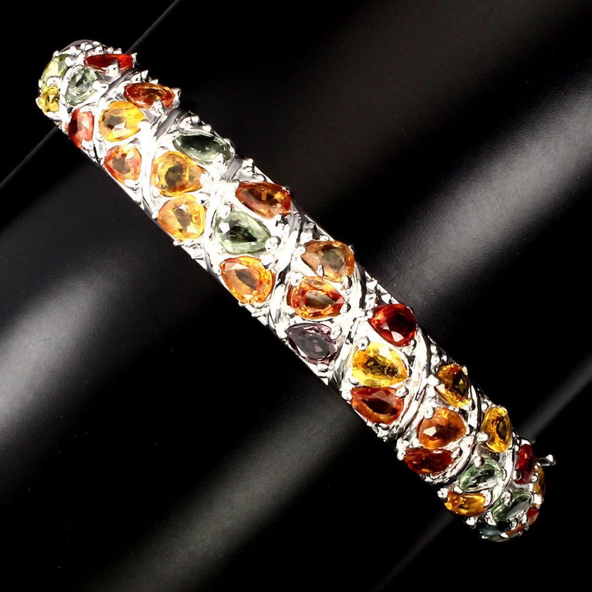 925 STERLING SILVER PLATE 14K WHITE GOLD RING SIZE/LENGTH (INCHES) MAIN STONE SAPPHIRE OTHER GEMS TOTAL WEIGHT 127.08 CT (TOTAL WEIGHT OF SILVER + STONE) DIMENSION * STONE 6.0 X 4.0 MM. * DIAMETER 2.4 X 2.3 INCHES. * FACE BANGLE 69.0 X 10.0 MM. MAIN STONE SHAPE PEAR CUT MAIN STONE COLOR MULTI-COLOR CLARITY/GRADE IF TO VVS LUSTER MESMERIZING TREATMENT HEATED ORIGIN SONGEA - AFRICA HARDNESS 9.0