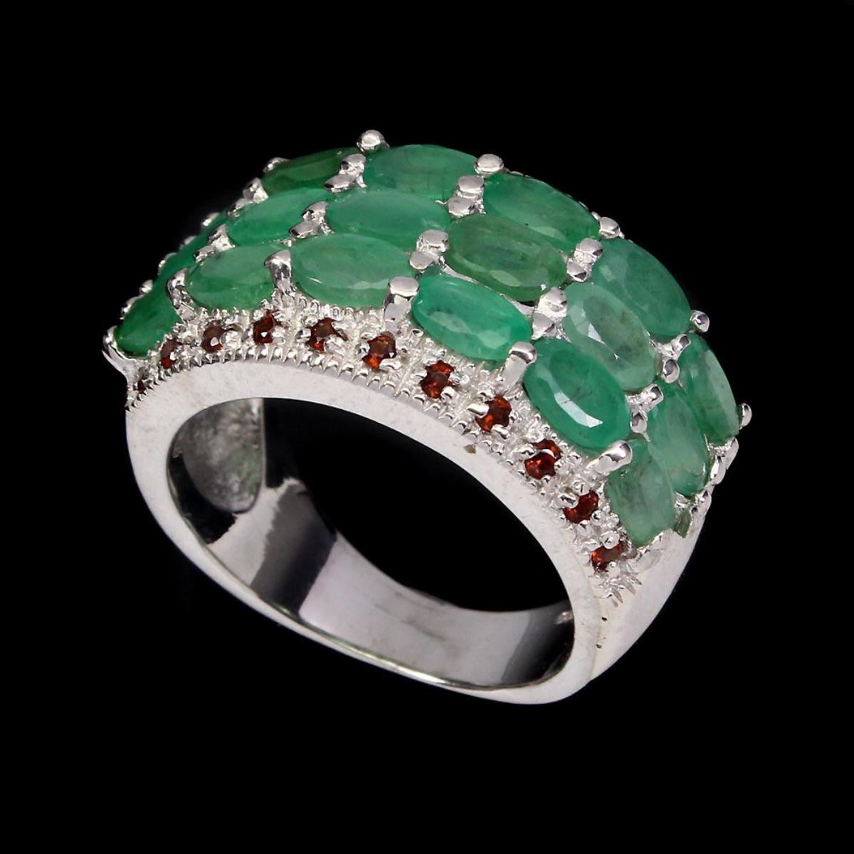 925 STERLING SILVERPLATE14K WHITE GOLDRING SIZE (resizeable)7MAIN STONEEMERALDOTHER GEMSMOZAMBIQUE GARNETTOTAL WEIGHT48.10 CT (TOTAL WEIGHT OF SILVER + STONE)DIMENSION* STONE 1.0 TO 5.0 X 3.0 MM. * FACE RING 29.0 X 14.0 MM.MAIN STONE SHAPEOVAL CUTMAIN STONE COLORTOP RICH GREENCLARITY/GRADETRANSPARENTLUSTERPRECIOUSTREATMENTUNHEATEDORIGINBRAZILHARDNESS7.5 - 8.0