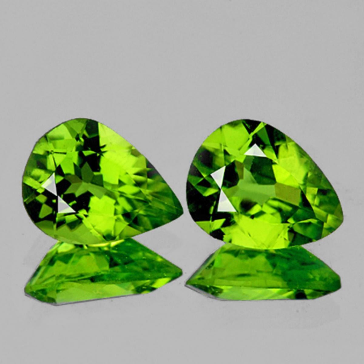 Natural Peridot ; SHAPE : Pear SIZE ( L x W x D ) : 10 x 8 mm; QUANTITY : 2 pieces COLOR : Green Beat Color CLARITY : IF-VVS1 (BEST QUALITY) ORIGIN : PAKISTAN HARDNESS : 7 LUSTER : Excellent!!! TREATMENT : UNHeated