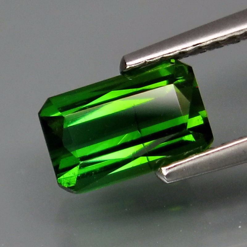 GEM TYPE :Tourmaline;SHAPE :Emerald Cut;WEIGHT :1.40 Ct.;SIZE :7.8 X 4.9 X 4 Mm.;QUANTITY :1 Piece;COLOR :Top Green;CLARITY :Si;LUSTER :Superior;ORIGIN :Mozambique;TREATMENT :None;HARDNESS :7-7.5