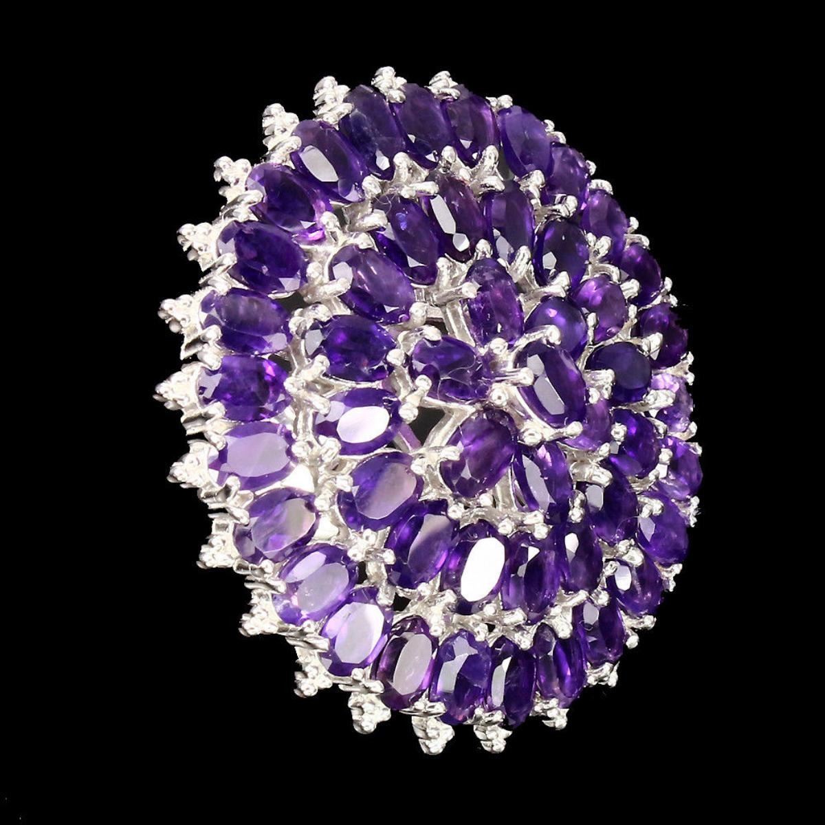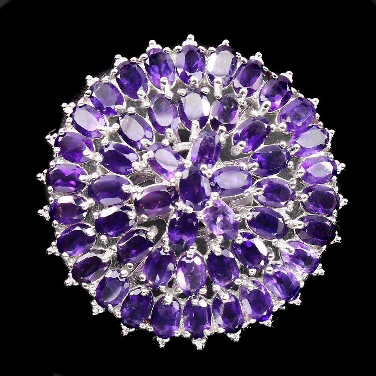 925 STERLING SILVER..... PLATE -14K WHITE GOLD; RING SIZE - 9; MAIN STONE -AMETHYST; TOTAL WEIGHT 120.39 CT (TOTAL WEIGHT OF SILVER + STONE)...please note its huge special ring.....look at the images. DIMENSION * STONE 6.0 X 4.0 MM. * FACE RING 44.0 X 44.0 MM. MAIN STONE SHAPE OVAL CUT MAIN STONE COLOR TOP INTENSE PURPLE CLARITY/GRADE IF TO VVS LUSTER GORGEOUS TREATMENT UNHEATED ORIGIN URUGURY HARDNESS 7.0